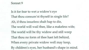 Sonnet 9 is one of 154 sonnets written by the English playwright and poet William Shakespeare. It is a procreation sonnet within the Fair Youth sequence.