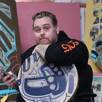 Sonny Assu is a Ligwilda'xw Kwakwaka'wakw contemporary artist. Assu's paintings, sculptures, prints, installations, and interventions are all infused with his wry humour which is a tool to open the conversation around his themes of predilections: consumerism, colonization and imperialism.