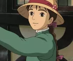 Sophie Hatter is the main character in Studio Ghibli's film Howl's Moving Castle. She runs a hat shoo in her town along with her sisters and mother. When the Witch of the Waste curses her with a spell that turns her into a ninety-year old woman, Sophie goes to the Waste in search of a cure.