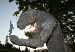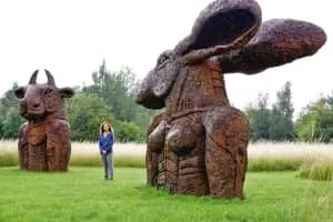 Sophie Ryder is a British female sculptor. Her imaginary world is populated by mystical hybrid creatures bound together in intimate and affectionate companionship.