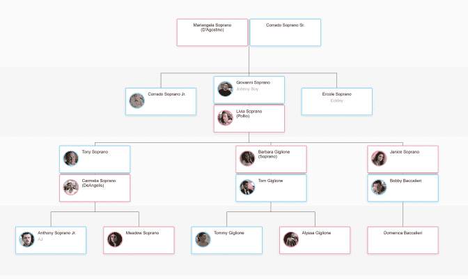 The DiMeo crime family, also known as the Soprano crime family, is a fictional Italian American Mafia Crime Syndicate based in New Jersey, and the protagonistic group in The Sopranos.