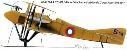 The SPAD S. A was a French two-seat tractor biplane first flown in 1915. It was used by France and Russia in the early stages of the First World War in the fighter and reconnaissance roles. It was a somewhat unusual aircraft that carried its observer in a nacelle ahead of both wing and engine.