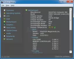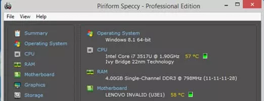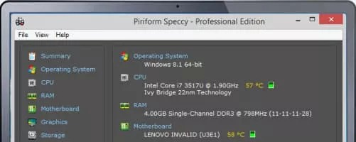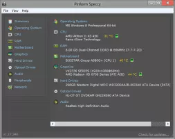 Speccy, developed by Piriform, is a freeware utility software and runs under Microsoft Windows 10, Windows 8, Windows 7, Vista and XP for both IA-32 and x64 versions of these operating systems, which shows the user information about hardware and software of the computer.