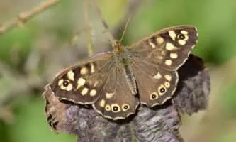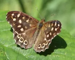 | Did you know | Speckled woods have brown wings with creamy-yellow spots; there is one black and white eyespot on the forewing and three on the hind. |