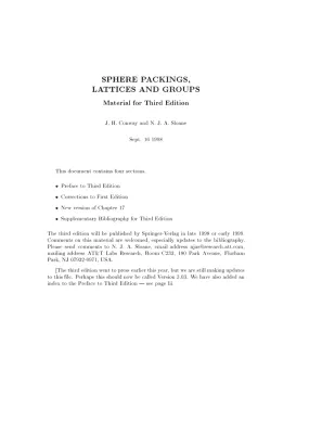 The second edition of this timely, definitive, and popular book continues to pursue the question: what is the most efficient way to pack a large number of equal spheres in n-dimensional Euclidean space? ...
