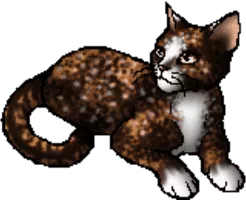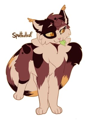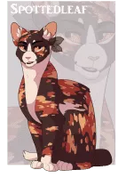 Spottedleaf is a dark tortoiseshell-and-white she-cat with amber eyes. Spottedleaf was a medicine cat under Bluestar's leadership in the forest territories. She was born as Spottedkit to Adderfang and Swiftbreeze alongside her littermates, Redkit and Willowkit.