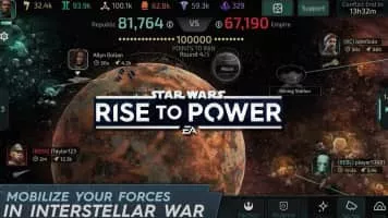 Star Wars: Rise to Power is an upcoming mobile strategy game published by Electronic Arts. The game was announced August 15, 2017. As of June 2019, the game is in closed pre-alpha testing for Android users.