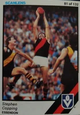 Stephen Copping is a former Australian rules footballer who played with Essendon in the Victorian Football League and Glenelg in the South Australian National Football League during the 1980s.