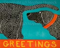 Stephen Huneck was an American wood carving artist, furniture maker, painter, and author. Most of his later artwork is composed of carvings of dogs. Stephan credited the change in his artwork to his dogs coming into the hospital and bringing him out of a long coma.