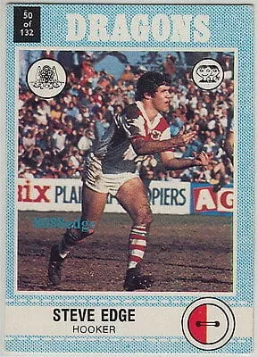 Steve Edge is an Australian former rugby league footballer who played in the 1970s and 1980s. A New South Wales Blues representative hooker he played in the St. George Dragons' 14th and 15th grand final wins and captained the Parramatta Eels to their 1st, 2nd and 3rd premierships.