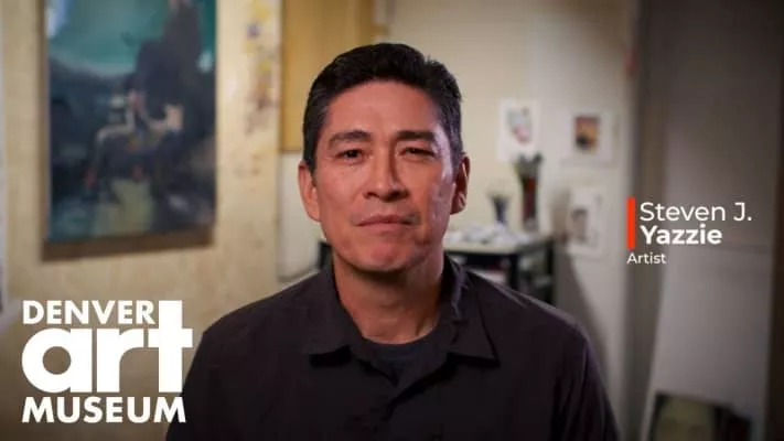 Steven Yazzie is a Native American artist, who is enrolled in the Navajo Nation and of Laguna Pueblo descent of his father's side. He creates video art and installation environments but described painting as his first and most important medium.