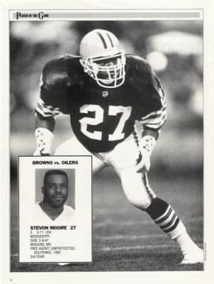 Stevon Nathaniel Moore is an American former football player who was selected by the New York Jets in the seventh round of the 1989 NFL Draft. A 5'11", 204-lb. safety from the University of Mississippi, Moore played in nine NFL seasons from 1990 to 1999.