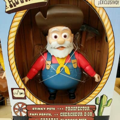Stinky Pete (or simply known as the Prospector) is one of the two main antagonists (alongside Al McWhiggin) of Disney•Pixar's 1999 animated film Toy Story 2. He is a vintage pull-string prospector ragdoll from the 1950s, and inside his original box, his accessories include a pickaxe and a gold pan.