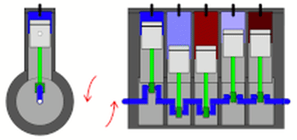The straight-five engine or inline-five engine is an internal combustion engine with five cylinders aligned in one row or plane, sharing a single engine block and crankcase. The justification for a five cylinder engine is that it is almost as compact as an inline-four, and almost as smooth as a straight-six engine.