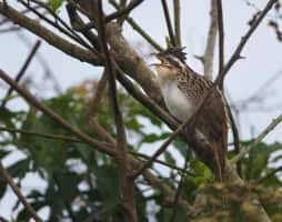 The striped cuckoo is a near-passerine bird, the only member of the genus Tapera. This resident cuckoo is found from Mexico and Trinidad south to Bolivia and Argentina. The striped cuckoo is found in open country with trees or shrubs, and the edges of mangrove forests.