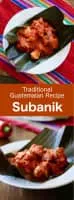 Subanik is a ceremonial stew-like dish originated from the Maya of Guatemala. A variety of chili peppers as well as meats are characteristic of this dish and the main components of its flavor. The dish is usually served alongside rice and tamales.