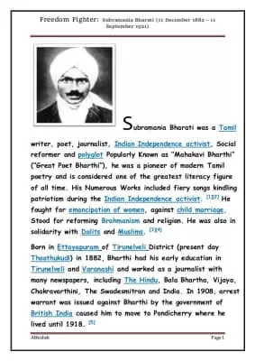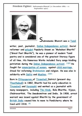 | Full name | Chinnaswami Subramania Bharati |