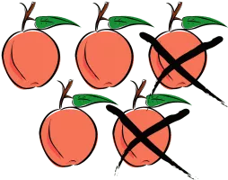 Subtraction is an arithmetic operation that represents the operation of removing objects from a collection. Subtraction is signified by the minus sign, −. For example, in the adjacent picture, there are 5 − 2 peaches—meaning 5 peaches with 2 taken away, resulting in a total of 3 peaches.
