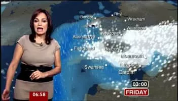 Sue Charles is a Welsh TV and weather presenter for BBC Wales. Sue presents the morning and weekend weather broadcasts for Wales Today, as well as acting as a relief weather presenter for meteorologist Derek Brockway. Born and educated in Llandrindod Wells, Powys, she took a holiday job with Radio Wyvern.