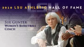 Sue Gunter was an American women's college basketball coach. She is best known as the head coach of the Louisiana State University Lady Tigers basketball team. Gunter was inducted into the Women's Basketball Hall of Fame in 2000.
