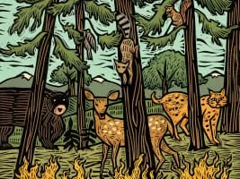Sue Todd is an award-winning illustrator living in Toronto, Ontario. She creates linocut prints in her yellow studio, and gets her best ideas while riding around the city on her bicycle.