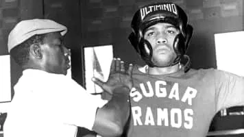 Ultiminio Ramos Zaqueira was a Cuban-born Mexican professional boxer who was better known as Sugar Ramos. Ramos fought out of Mexico where he was adopted as a national hero. He was a world featherweight champion and member of the International Boxing Hall of Fame.