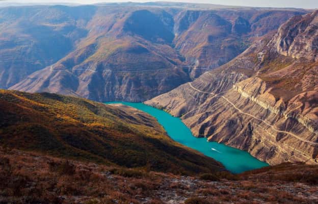 The Sulak Canyon is a steep-sided deepest canyon in Europe carved by the Sulak River in Dagestan, Russia. The Sulak Canyon is 53 kilometres long, and attains a depth of over a mile. It is 63 meters deeper than the Grand Canyon in the US and 620 meters deeper than the Tara River Canyon in Europe.