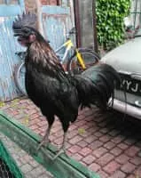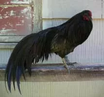 The Sumatra is a breed of chicken native of the island of Sumatra in Indonesia. These chickens were originally imported from Sumatra in 1847 to the U. S. and Europe as fighting cocks for the purpose of entertainment, but today the breed is primarily kept for exhibition.