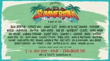 Summerjam is a European reggae festival. It takes places annually in July at the Fühlinger See, which is a lake located in Cologne, Germany. The event usually attracts an audience of between 25,000 and 30,000 people. Two stages and two tents are located on an island, with the camping area surrounding the lake.