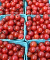 The Super Sweet 100 tomato cultivar is a hybrid that produces long fruit-bearing stems holding 100 or more very sweet cherry tomatoes. Fruits weigh approximately 1 oz. , and are 1 inch across. Plants need caging or staking, and produce fruit throughout the growing season.