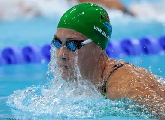 Suzaan van Biljon is an Olympic-swimmer from South Africa. She swam for South Africa at the 2008 and 2012 Olympics, and as of June 2009 holds both African and South African records.