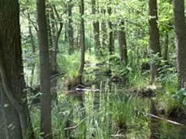 A swamp is a wetland that is forested. Many swamps occur along large rivers where they are critically dependent upon natural water level fluctuations. Other swamps occur on the shores of large lakes.