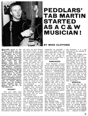 Tab Martin is an English bass guitarist. He has been a member of well-known English bands from the 1960s. He was a member of the Tornados and played on their hit "Globetrotter". He was also a member of the Peddlers and played on their hits "Birth" and "Girlie". He also founded 1960s group the Saints.