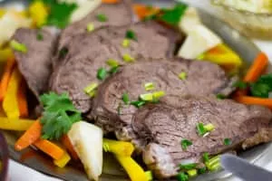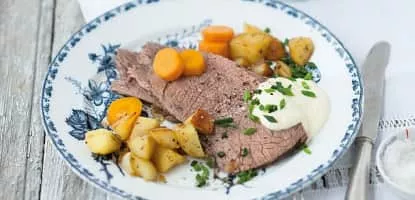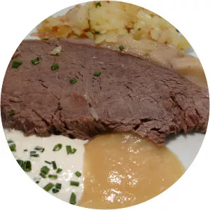 Tafelspitz is boiled veal or beef in broth, served with a mix of minced apples and horseradish. It is a classic dish of the Viennese cuisine and popular in all of Austria and the neighboring German state of Bavaria. Franz Joseph I, Emperor of Austria, was a great lover of Tafelspitz.