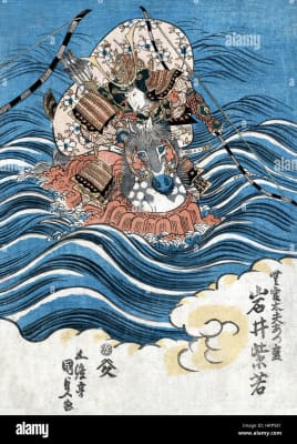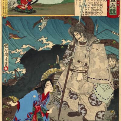 Taira no Tomomori was the son of Taira no Kiyomori, and one of the Taira Clan's chief commanders in the Genpei War at the end of the Heian period of Japanese history. He was victorious at the Battle of Uji in 1180. He also became successful in the Battle of Yahagigawa in 1181.