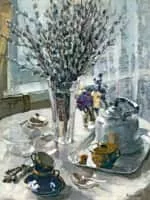 Taisia Kirillovna Afonina was a Ukrainian and Russian painter and watercolorist. She lived and worked in Leningrad, was a member of the Saint Petersburg Union of Artists, and is regarded as one of the representatives of the Leningrad school of painting.