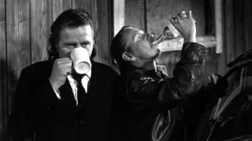 Two men (Matti Pellonpää, Mato Valtonen) take to the road in search of coffee and vodka, and meet two women who are clearly interested in them.