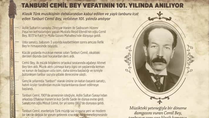 Tanburi Cemil Bey was an Ottoman tanbur, Turkish tambur, yaylı tambur, kemençe, and lavta virtuoso and composer, who has greatly contributed to the taksim genre in Ottoman classical music. His son, Mesut Cemil Bey, was an equally renowned Turkish tambur virtuoso.