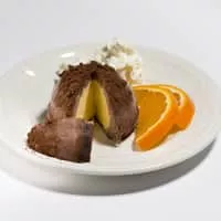 Tartufo is an Italian ice cream dessert originating from Pizzo, Calabria. It is usually composed of two or more flavors of ice cream, often with either fruit syrup or frozen fruit — typically raspberry, strawberry, or cherry — in the center.