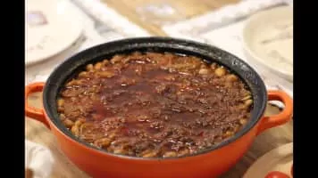 Tavče gravče is a traditional Macedonian dish. It is prepared with fresh beans and can be found in many restaurants in North Macedonia. It is also commonly eaten by the Macedonian diaspora. This meal is baked and served in a traditional clay made pot. Its name is translated as "Beans on a tava".