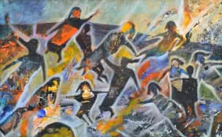 Tayseer Barakat is a Palestinian artist, born in 1959 in Gaza and raised in Palestine, he moved to Egypt and studied fine art, where he graduated from the Alexandria Art University in Egypt in 1983.