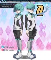 Galactic Grunts are the low-leveled agents of Team Galactic. They work under their commanders and Cyrus. They are men and women with turquoise hair and are dressed in space suits. They appear in Pokémon Diamond and Pearl. They may be battled in single, but also with an option of fighting them in a double battle.