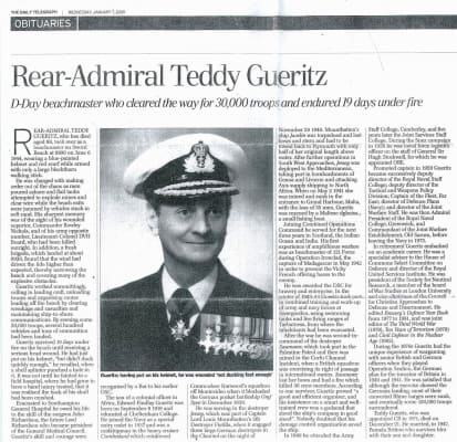 Rear Admiral Edward Findlay Gueritz, CB, OBE, DSC & Bar was a long-serving Royal Navy officer. From D-Day, 6 June 1944, he served as beachmaster on Sword, organising the flow of men and materiel into the beachhead, including 30,000 troops on the first day.