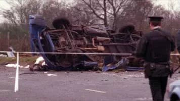The Teebane bombing took place on 17 January 1992 at a rural crossroads between Omagh and Cookstown in County Tyrone, Northern Ireland. A roadside bomb destroyed a van carrying 14 construction workers who had been repairing a British Army base in Omagh. Eight of the men were killed and the rest were wounded.