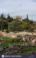 The Temple of Apollo Patroos is a small ruined temple of Ionic order built in 340-320 BCE. It is 10 m wide and 16. 5 m long, and is located north-west of the Ancient Agora of Athens, near the Stoa of Zeus. Apollo was considered to be the founder of the Ionian race and protector of families.