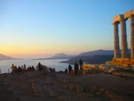 The Ancient Greek temple of Poseidon at Cape Sounion, built during 444–440 BC, is one of the major monuments of the Golden Age of Athens. It is perched above the sea at a height of almost 60 metres.