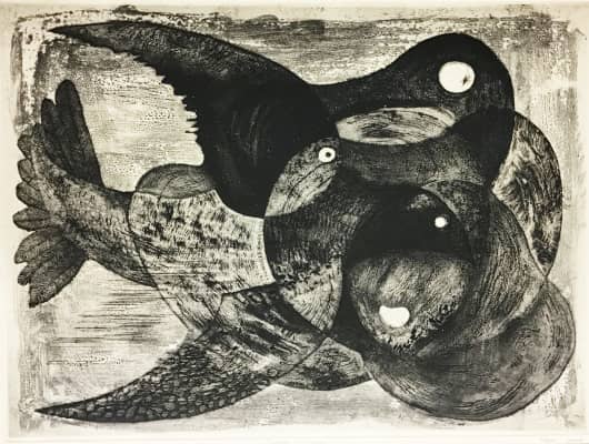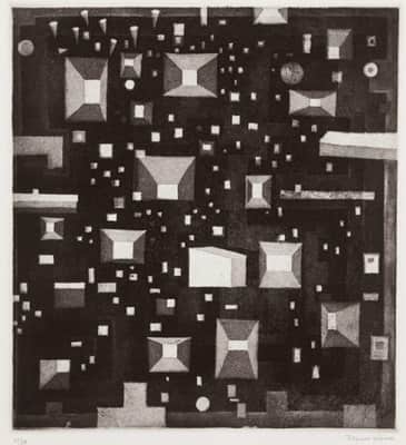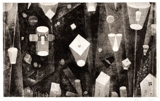 1920-1976. Komai Tetsurô (駒井哲郎), born in Nihonbashi, Tokyo in 1920, was the sixth son in a family living near and supplying ice for fish markets. He learned the basic techniques of copper-plate etching while still in Keio High School (grad.