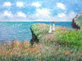 The Cliff Walk at Pourville is an 1882 painting by the French Impressionist painter Claude Monet. It currently resides at the Art Institute of Chicago. It is a landscape painting featuring two women atop a cliff above the sea. The canvas was inspired by an extended stay at Pourville in 1882.