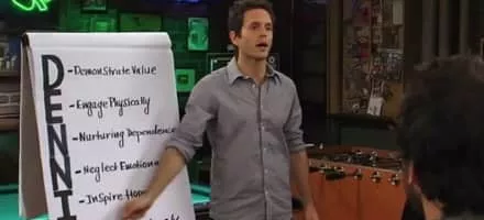 Dennis reveals his fool-proof system for seducing any woman to the rest of the gang, but they don't grasp the concept.