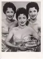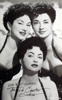 The DeCastro Sisters were an American singing group. They originally consisted of Peggy DeCastro, Cherie DeCastro and Babette DeCastro. When Babette retired in 1958, a cousin, Olgita DeCastro Marino, replaced her and when Peggy later left the group to go solo, Babette re-joined Cherie and Olgita.